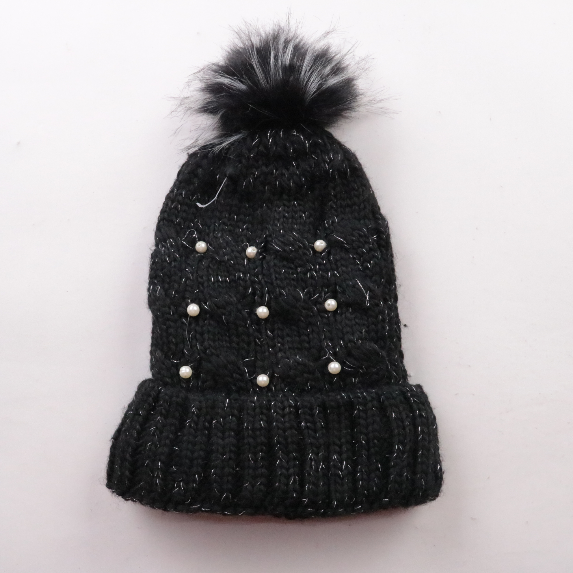 Вязаная шапка C&A чёрного цвета с помпоном и декором из бусин. Подойдёт для зимних прогулок и повседневных образов, хорошо сочетается с пуховиком или пальто. Мягкая подкладка делает шапку тёплой и комфортной в холодную погоду.