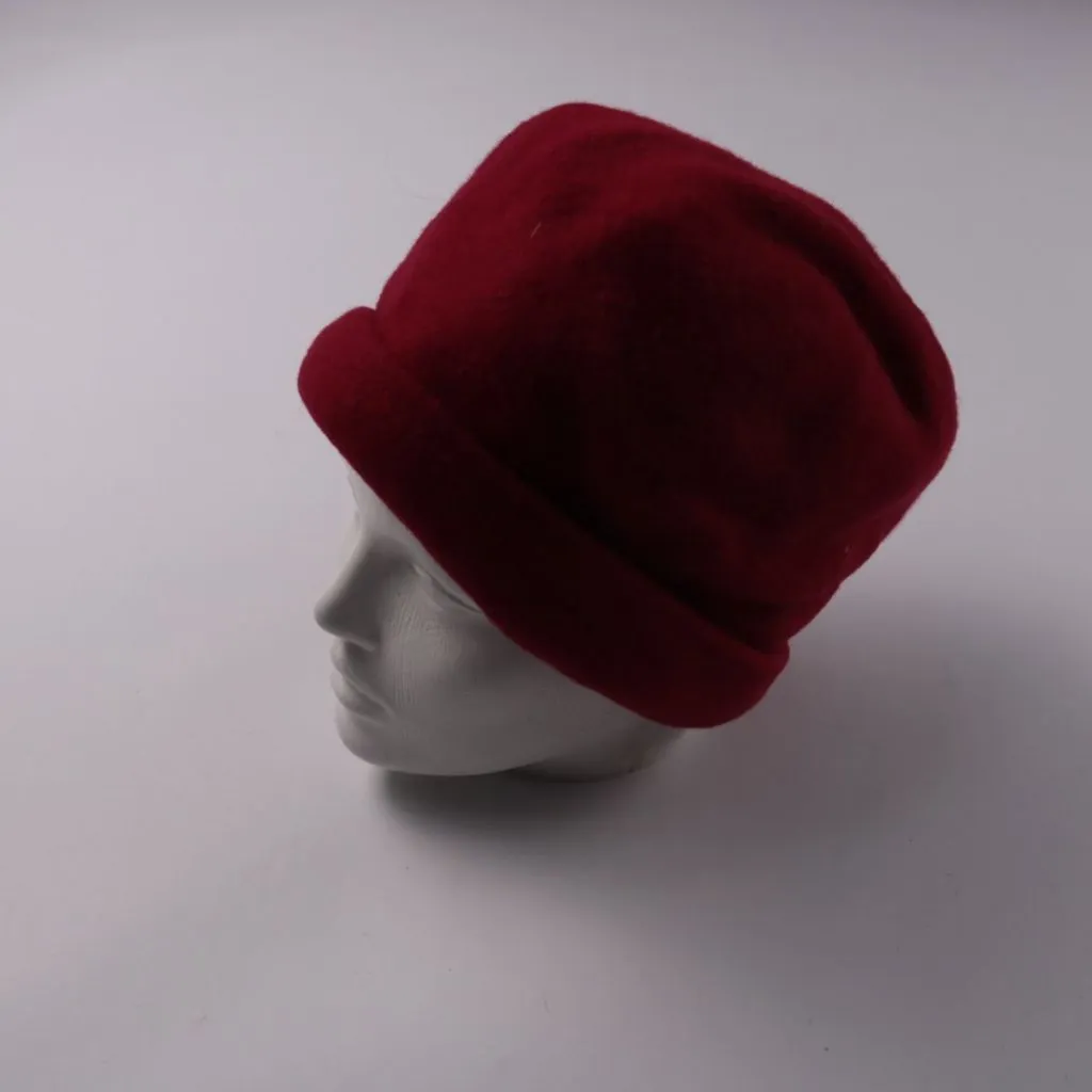 Мягкая бордовая шапка без бренда, с широкой отворотной манжетой. Подойдёт для повседневной носки в холодную погоду и хорошо сочетается с верхней одеждой в классическом стиле. Плотный материал помогает лучше удерживать тепло и закрывает уши.