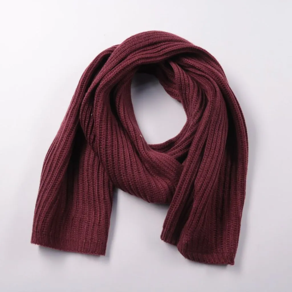 Вязаный шарф в рубчик бордового цвета без видимого брендинга. Подойдёт для повседневных образов и прогулок в холодную погоду, хорошо сочетается с пальто и пуховиками. Практичен тем, что длинный и легко завязывается разными способами, закрывая шею от ве...