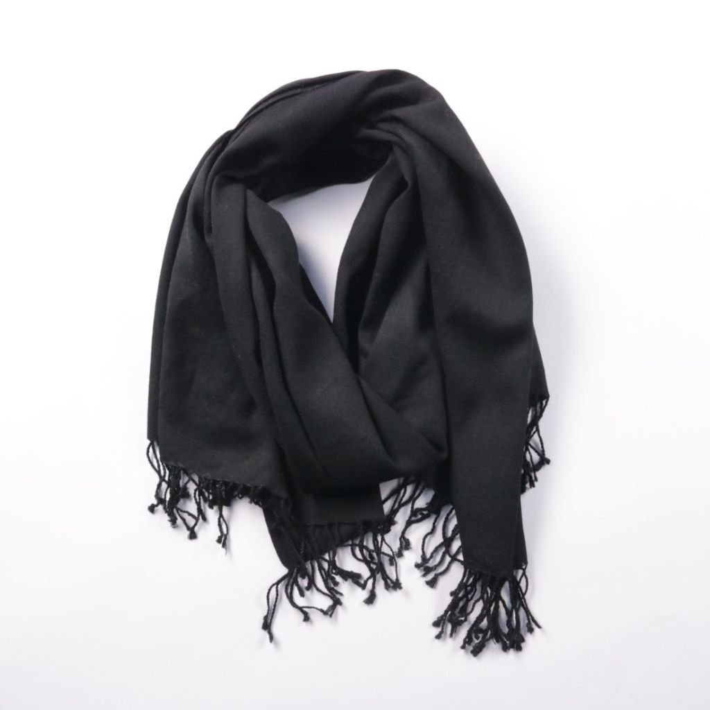 Шерстяной шарф FRANGI чёрного цвета с кисточками по краю. Подойдёт для повседневной носки в холодную погоду и хорошо сочетается с пальто или курткой. Натуральная шерсть помогает лучше сохранять тепло.