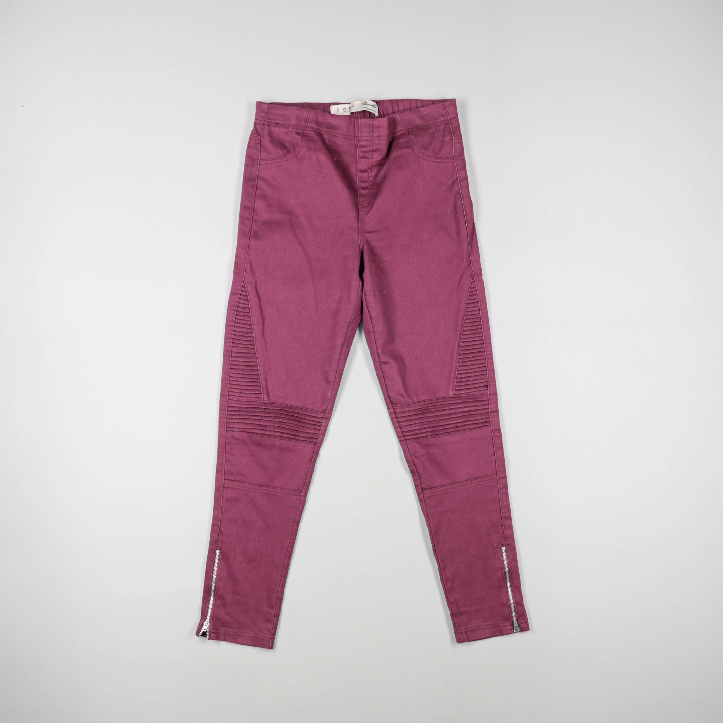 Брюки для девочки из плотной ткани бордового цвета, с декоративными вставками на коленях и молниями снизу. Подойдут для повседневной носки и прогулок в прохладную погоду. Удобный пояс и практичный материал легко стираются и не требуют сложного ухода.