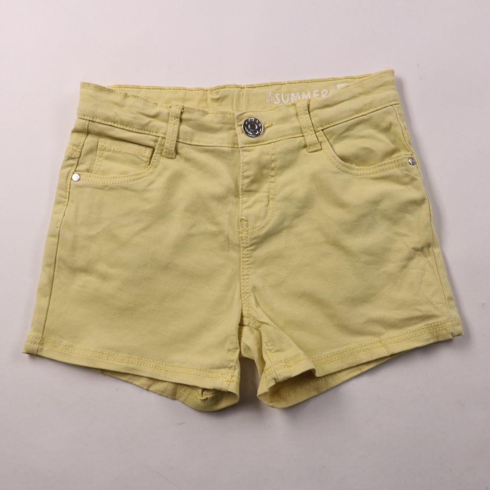 Летние шорты Hema светло‑жёлтого цвета из хлопкового материала с небольшим добавлением эластана. Подойдут для прогулок и повседневной носки в тёплую погоду, удобная посадка и карманы делают их практичными. Ткань хорошо дышит и не сковывает движения.