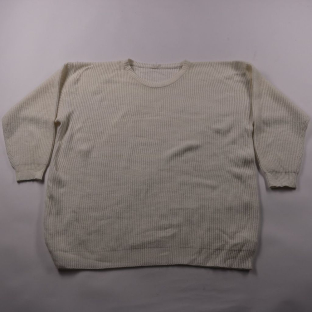 Трикотажный свитер молочного цвета с круглым вырезом и мягкой фактурой. Подойдёт для повседневной носки в детский сад или на прогулки в прохладную погоду. Лёгко сочетается с любой одеждой и удобно надевается как самостоятельный слой или под куртку.
