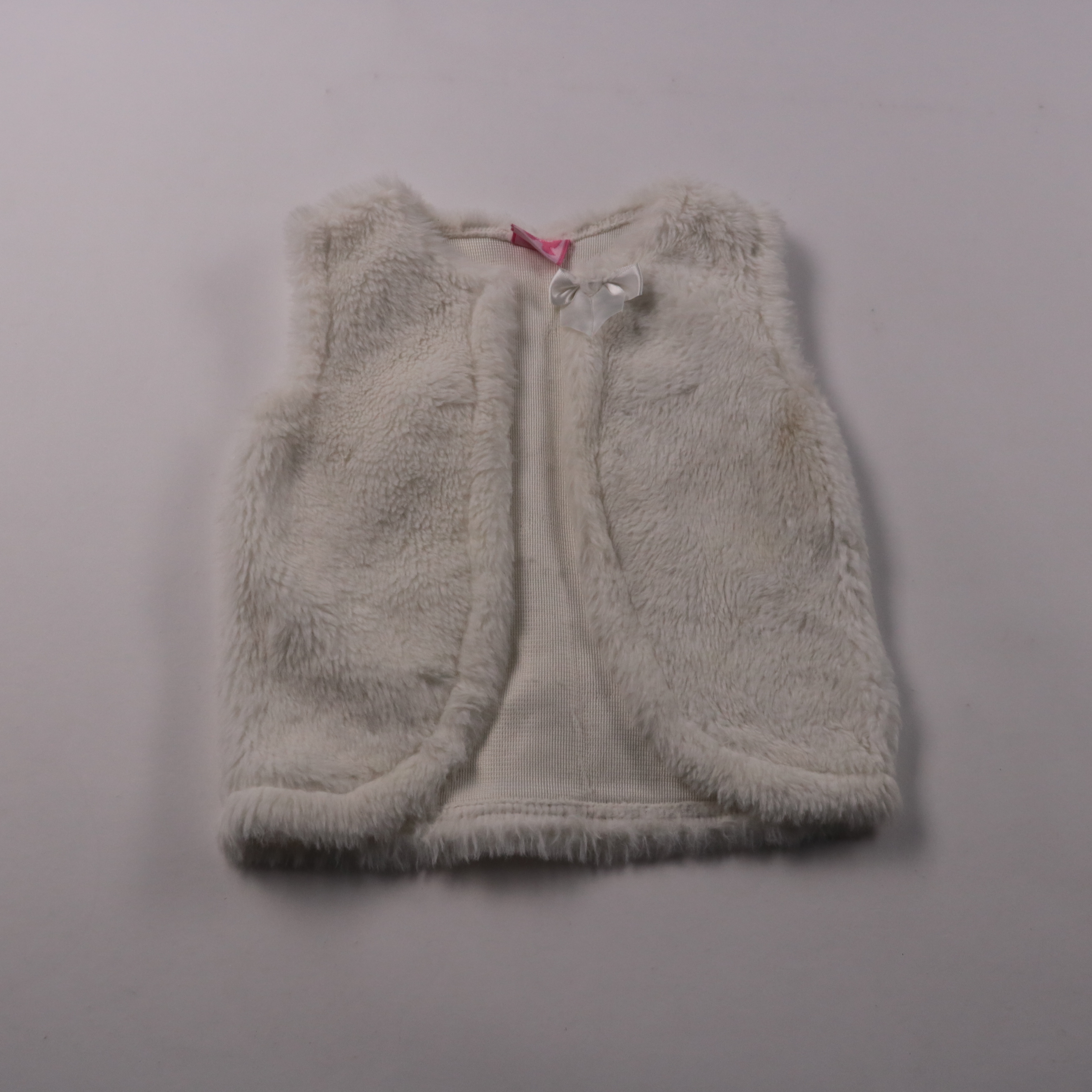 Меховой жилет Miss Me молочного цвета, мягкий и лёгкий, застёгивается на крючок. Подойдёт для прохладной погоды и праздничных образов поверх платья или водолазки. Практичный вариант: быстро надевается и не сковывает движения.