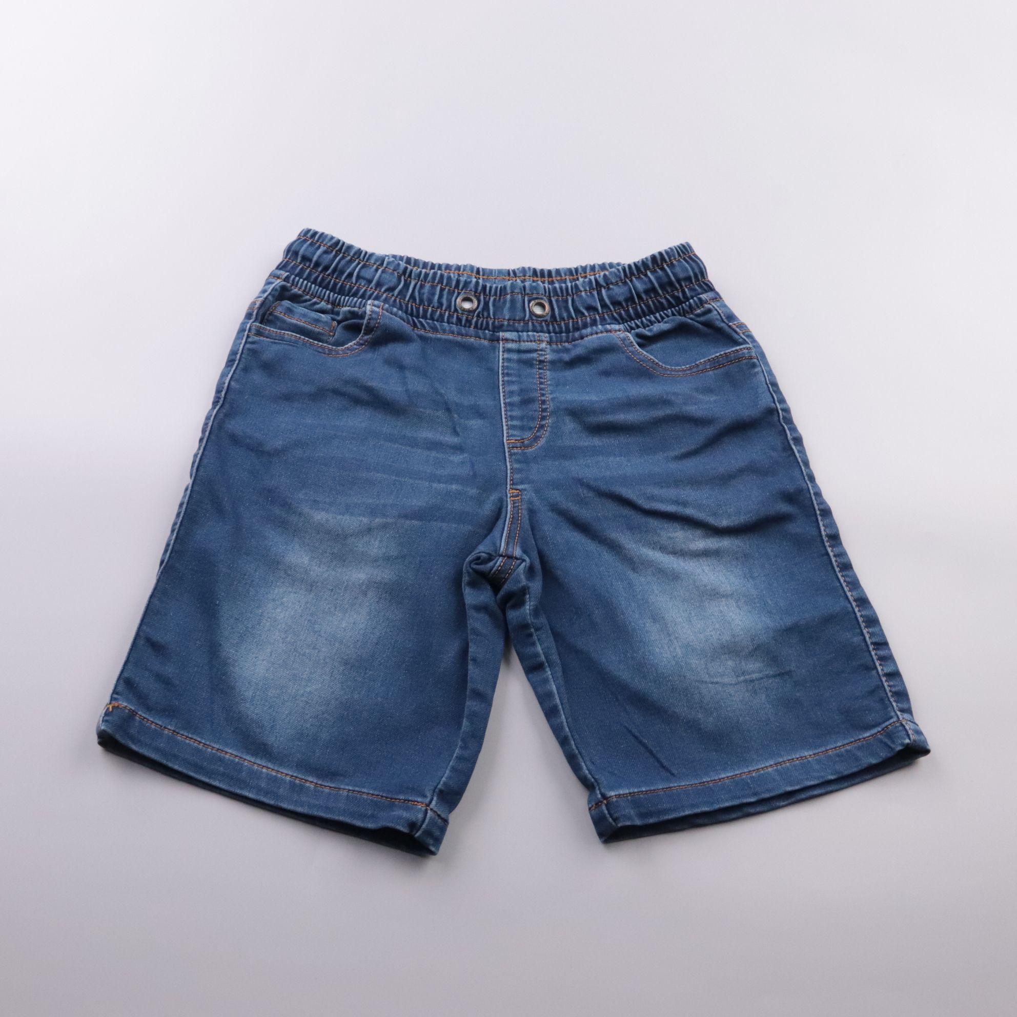 Джинсовые шорты Manguun синего цвета на эластичном поясе, удобные для прогулок и активных игр в тёплую погоду. Подойдут на каждый день и в поездки, ткань плотная и хорошо держит форму. Пояс на резинке помогает быстро надевать и комфортно сидит без ремня.