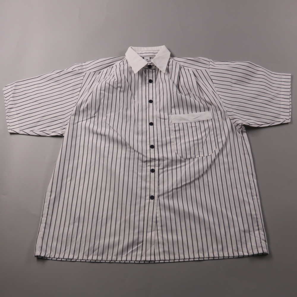 Рубашка для мальчика в белом цвете с тонкой синей полоской, короткий рукав, воротник и нагрудный карман. Подойдёт для школы, праздников или повседневной носки в тёплое время и под жакет/кардиган. Ткань смесовая (хлопок с полиэстером) — проще в уходе и ...