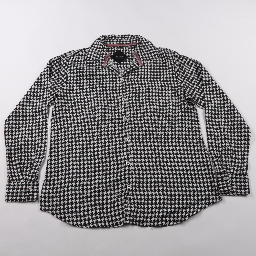 Рубашка Clarina Collection для мальчика в черно-белую «гусиную лапку», с длинным рукавом и застёжкой на пуговицы. Подойдёт для школы, праздников и повседневных образов с брюками или джинсами. Ткань мягкая и не требует сложного ухода.
