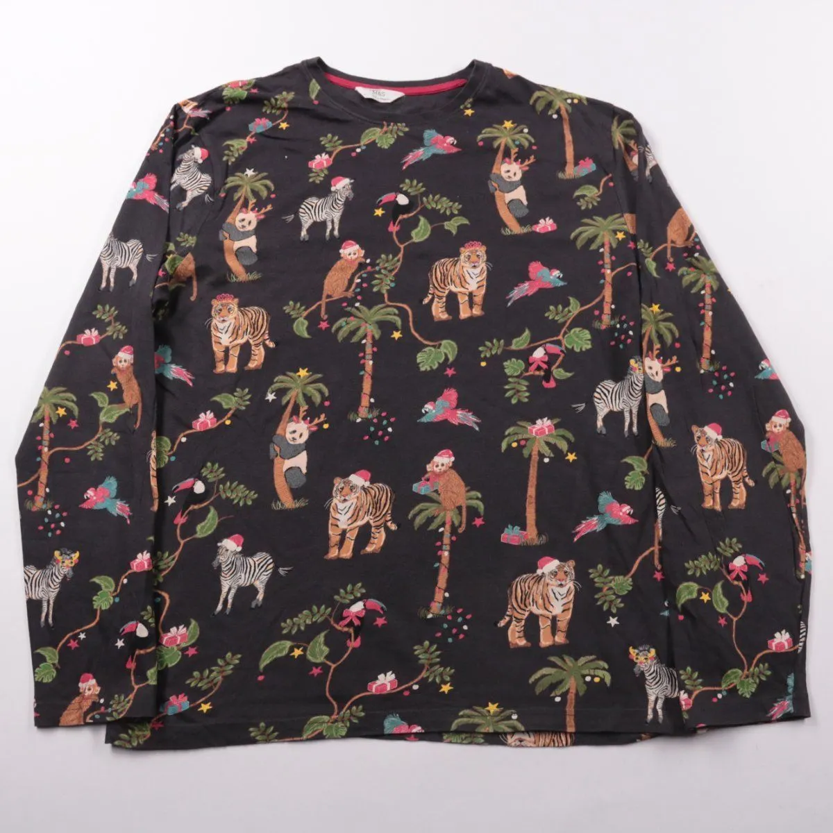 Кофта M&S с длинным рукавом и ярким принтом с животными на чёрном фоне. Подойдёт для школы, дома и прогулок в прохладную погоду, удобно носить слоем под куртку. Хлопковая ткань приятная к телу и простая в уходе.