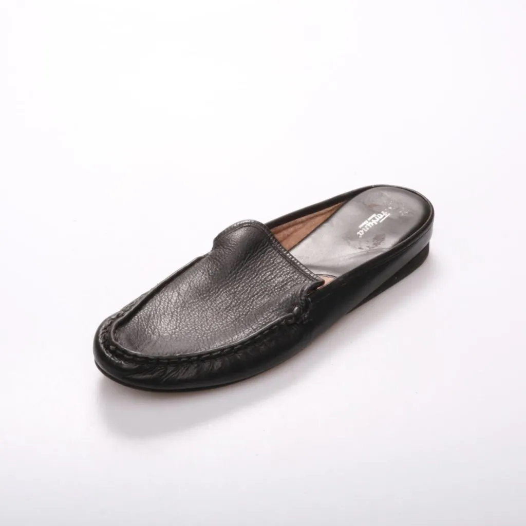 Мужские домашние тапочки Fortuna Home Shoes в виде кожаных мюлей без задника. Подойдут для дома и дачи, легко надеваются и снимаются. Практичная чёрная кожа и плотная подошва удобны для ежедневной носки.