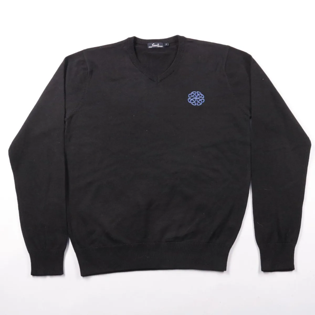 Мужской джемпер Premier Knitwear чёрного цвета с V-образным вырезом и небольшим вышитым логотипом на груди. Подойдёт для офиса и повседневных образов в прохладную погоду, удобно носить как самостоятельный слой или под пиджак. Практичный плюс — мягкий трикотаж и немаркий цвет.