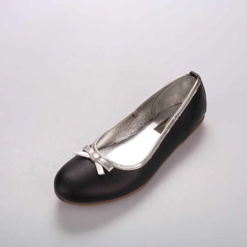 Женские балетки в чёрном цвете с серебристой окантовкой и небольшим бантом спереди. Подойдут для повседневной носки и аккуратных образов на работу или учёбу. Плоская подошва делает их удобными для ходьбы в течение дня.