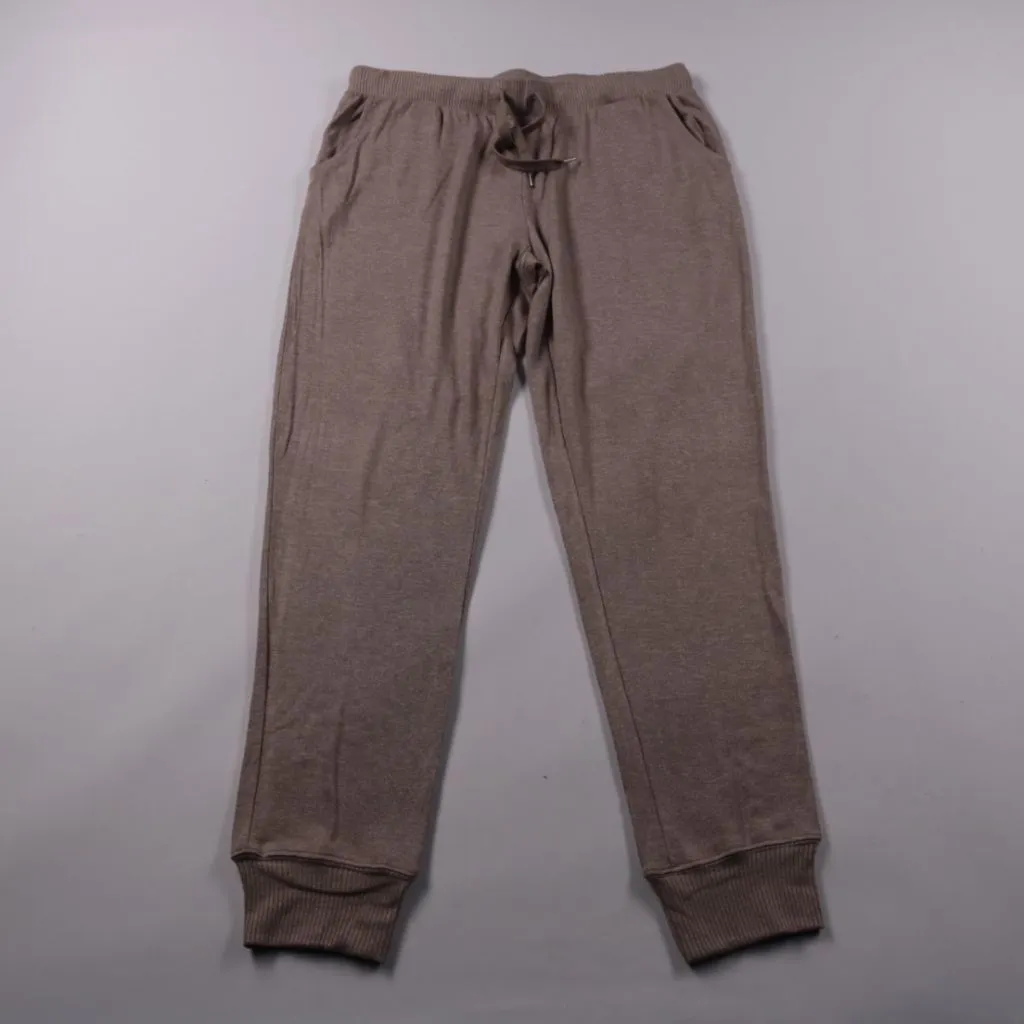 Трикотажные брюки-джоггеры HEMA в спокойном бежево-коричневом оттенке, с эластичным поясом на шнурке и боковыми карманами. Подойдут для дома, прогулок и повседневных расслабленных образов. Манжеты по низу фиксируют посадку и не дают штанинам задираться.