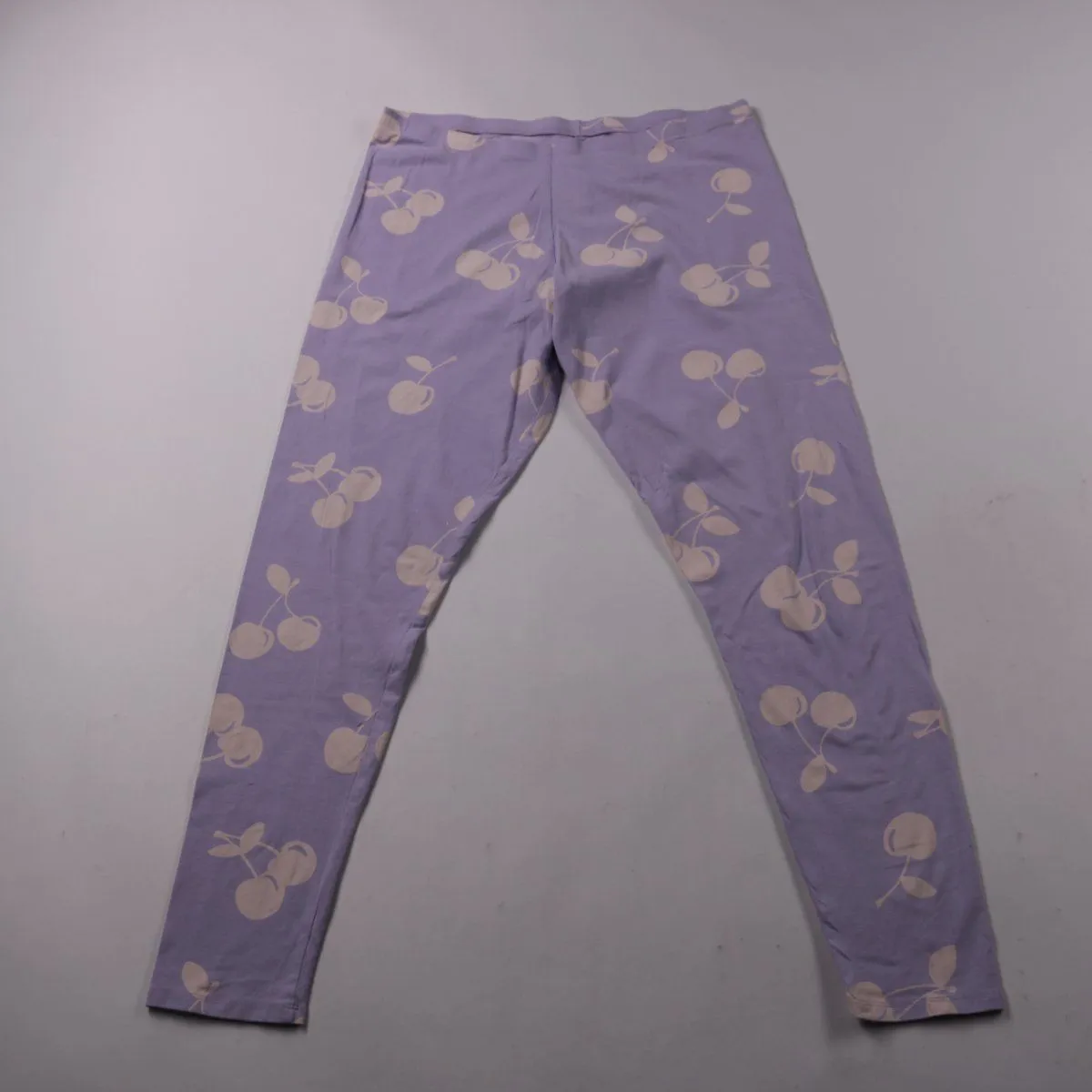 Женские легинсы F&F фиолетового цвета с бежевым принтом вишни. Подойдут для дома и сна, также можно носить как базовый нижний слой в прохладную погоду. Тянущийся материал комфортно садится по фигуре и не стесняет движений.