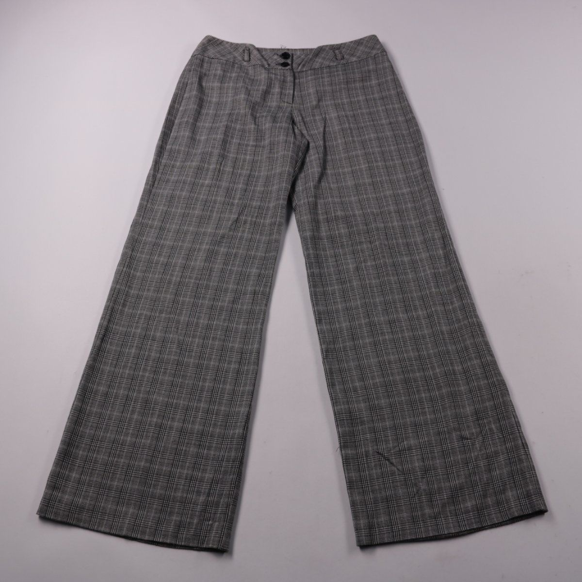 Брюки Dorothy Perkins серого цвета в клетку, прямого кроя с застёжкой на пуговицах. Подойдут для офиса и повседневных образов с рубашкой или джемпером. Практичный плюс — нейтральный принт легко сочетать с базовой обувью и верхом.