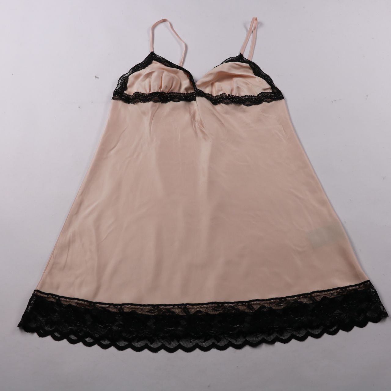 Женская ночная сорочка Esmara Lingerie на тонких бретелях, светло-бежевого/пудрового цвета с чёрной кружевной отделкой по груди и низу. Подойдёт для сна и домашней носки, ткань лёгкая и гладкая. Практичное преимущество — быстро сохнет и не занимает мно...