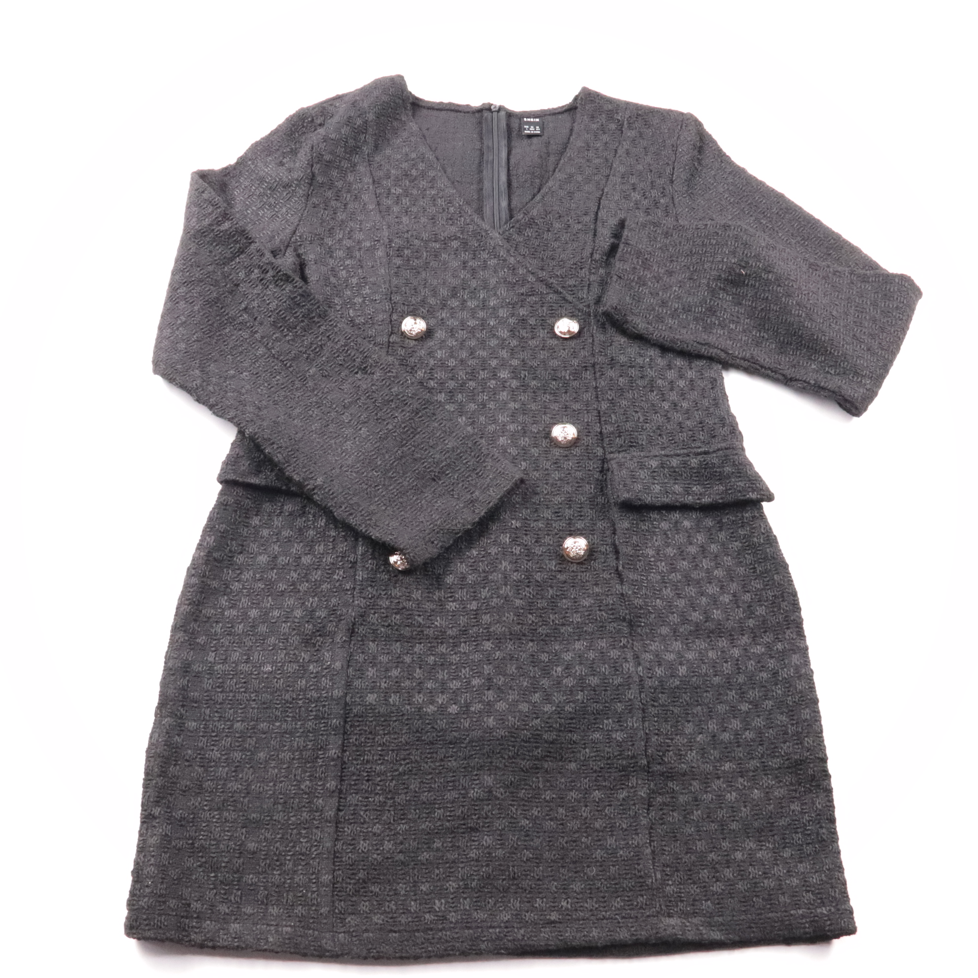 Платье Shein из фактурной ткани твидового вида, двубортный фасон с декоративными пуговицами и V‑вырезом. Подойдёт для офиса и повседневных выходов в прохладную погоду, хорошо сочетается с ботильонами и пальто. Практичный плюс — плотный материал держит ...