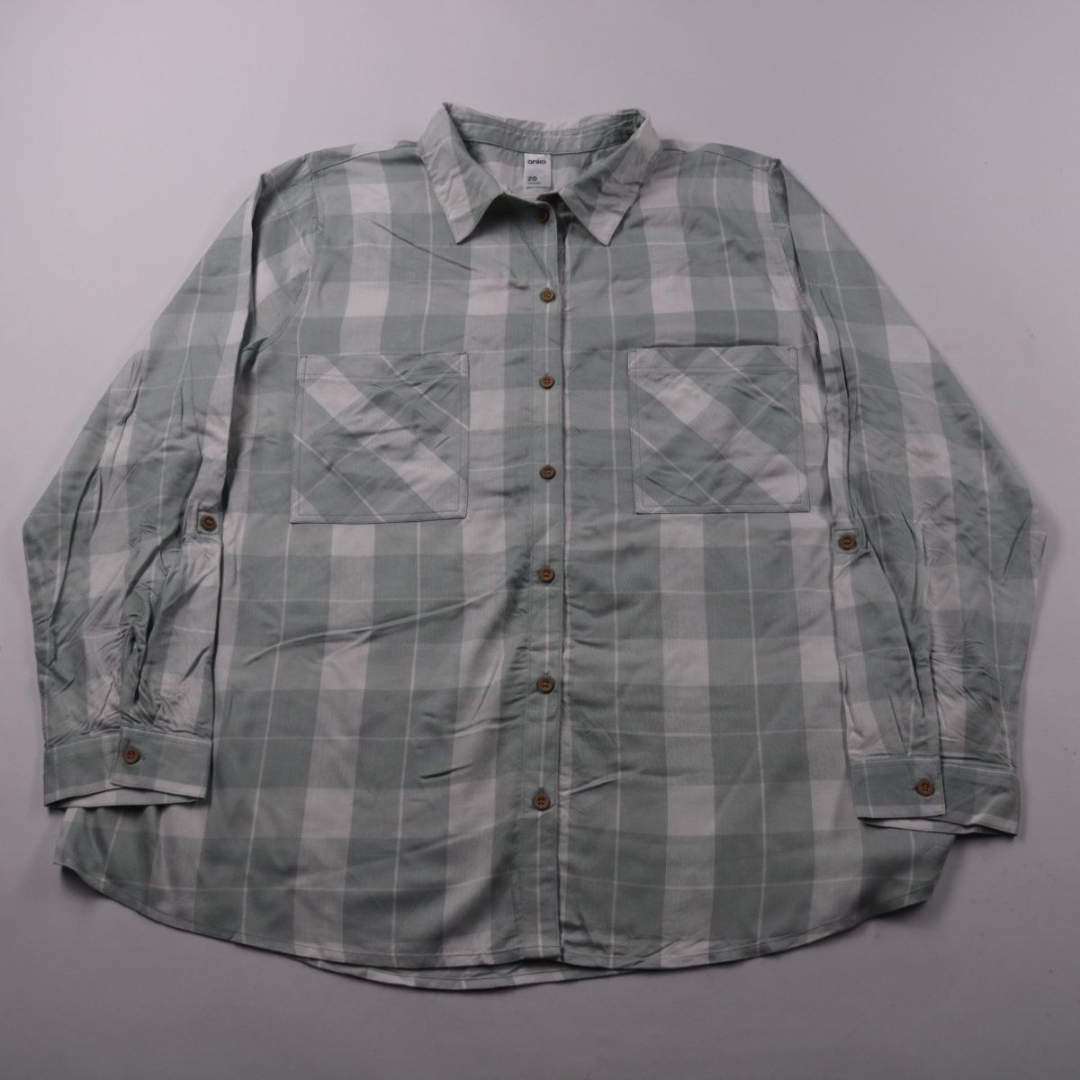 Женская рубашка Anko в клетку, на пуговицах, с длинным рукавом и двумя нагрудными карманами. Подойдёт для повседневных образов и офиса в стиле casual, можно носить навыпуск или как лёгкий верхний слой. Вискоза приятна к телу и хорошо дышит.