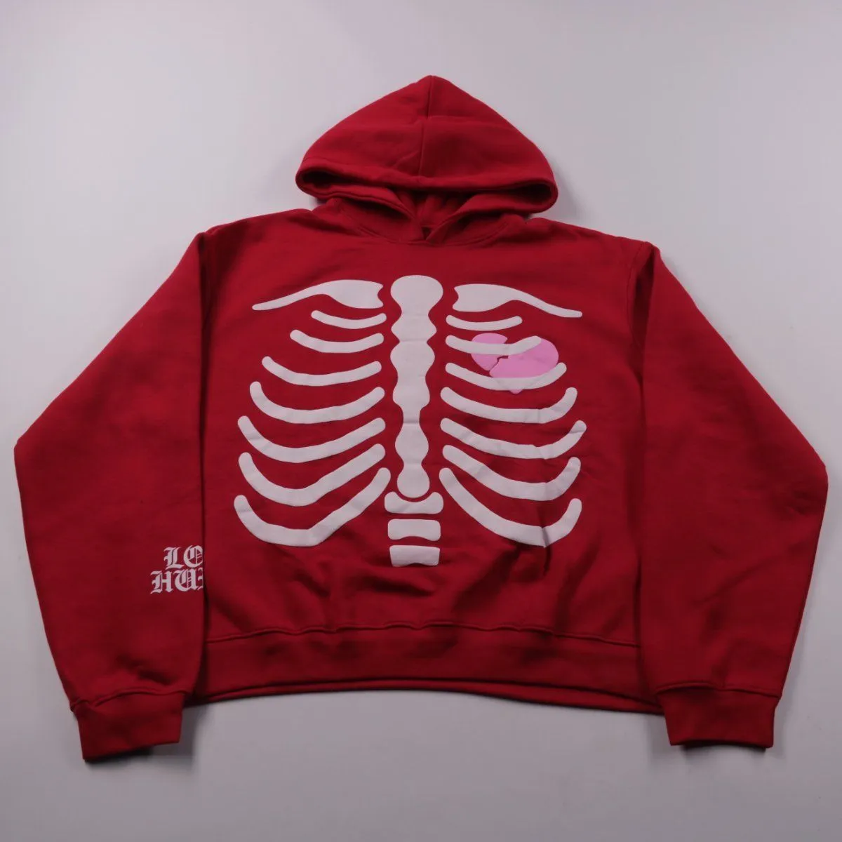 Худи BoohooMAN красного цвета с принтом «скелет» спереди и графикой на спине. Подойдёт для повседневных образов и streetwear в прохладную погоду. Плотный материал и капюшон дают дополнительное тепло и комфорт.