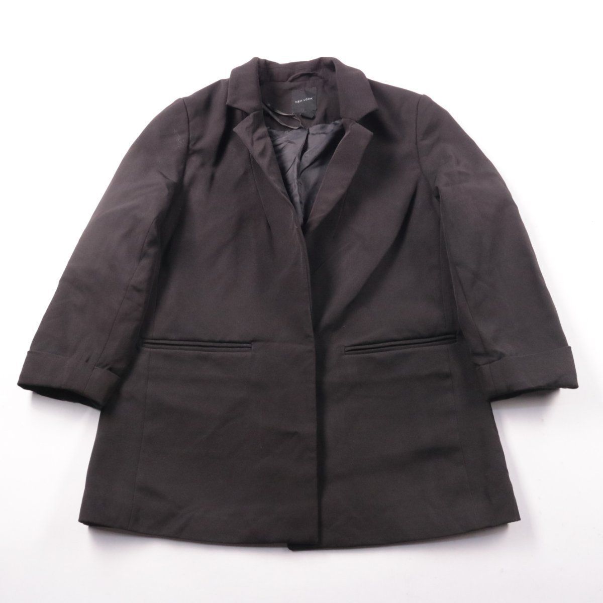 Женское пальто New Look в чёрном цвете, прямого кроя с лацканами и боковыми карманами. Подойдёт для офиса и повседневных образов в прохладную погоду. Практичный материал с добавлением эластана меньше мнётся и комфортнее садится по фигуре.